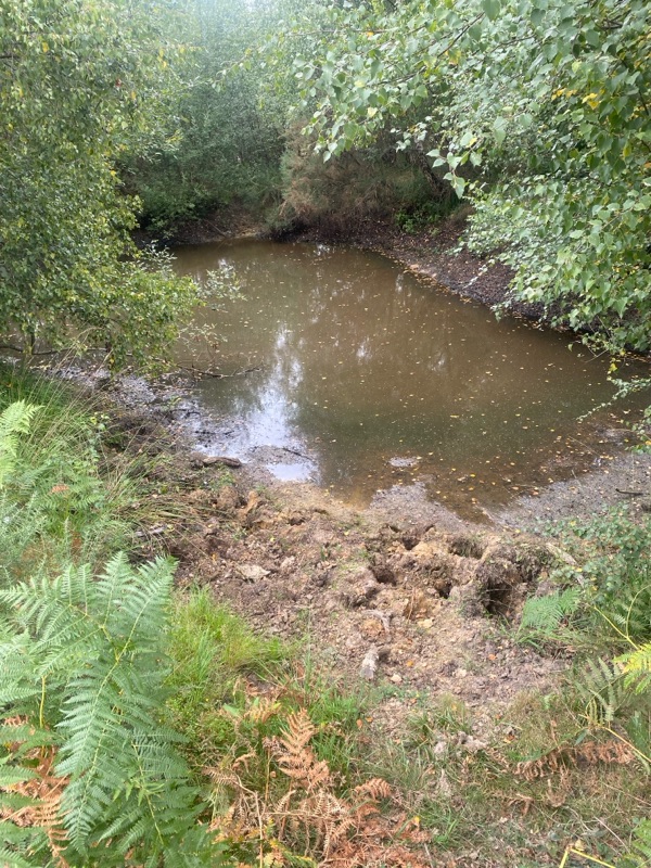 Unfortunately a no show today, though I did get pictures of the water. It rained whilst I was checking; enough for me to get wet but not enough to make a meaningful difference to the ground or water levels