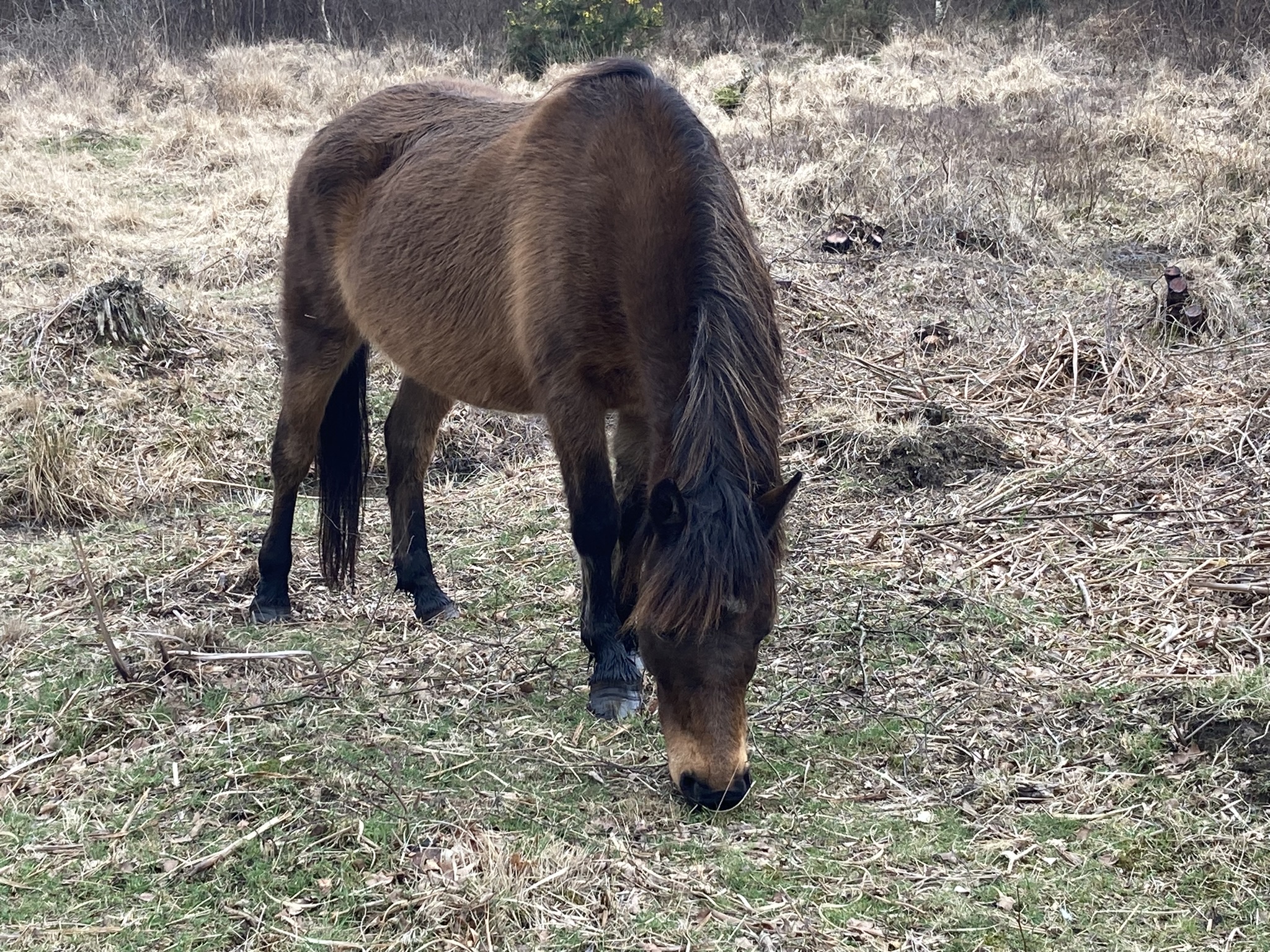The cows wandered down to the same area at 14:30 and started to munch on gorse from the nearby bushes. The ponies continued to graze the area for a good while before moving over to the other side of the main path.