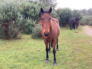 Megan and her foal were relaxing at the top of the eastern side of Brock's Hill at 15:25 this afternoon. The little one came straight over for his neck rub, showing lots of affection with cuddles, nuzzles and licks. Megan also greeted me before beginning to graze. Soon after, the other ponies emerged from the thicket where they had been grazing. They were all very friendly, approaching one by one for strokes. Despite being a little damp from the earlier rain, they were drying out quickly.